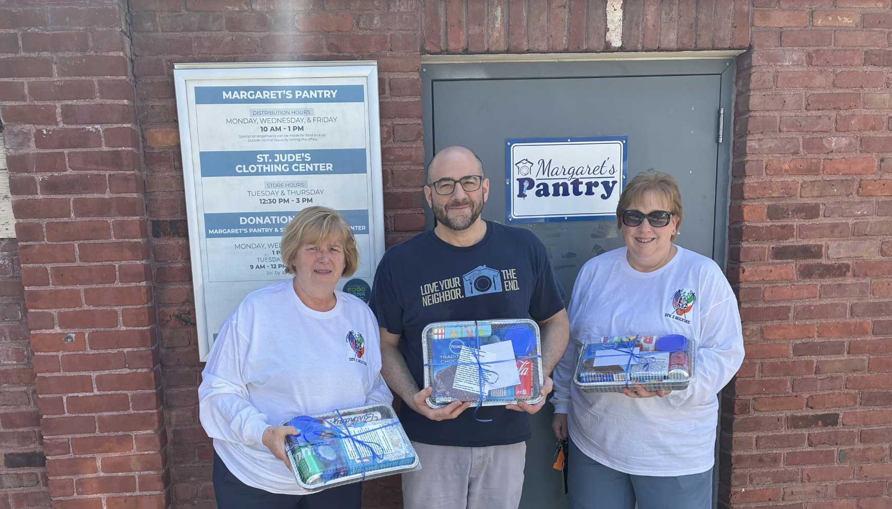 Today at Margaret’s Pantry, that spirit of kindness arrived in the form of birthday cake kits, generously donated by the Ladies Ancient Order of Hibernians Division 2 in Holyoke. Lady Hibernians Mary Kate O’Connor and Rosalie Pratt presented the kits to Associate Director Michael Nowak, who will help ensure they reach families in our community.