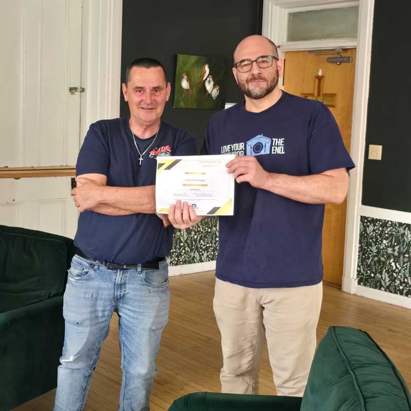 On Friday, April 17, friends, staff, and supporters gathered to celebrate not just the completion of an eight-week training program, but the perseverance and growth of four remarkable individuals: Shannon Gillick, Mark Davis, Jorge Perez, and James Paul Bourget.