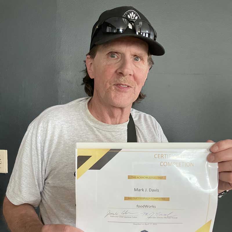 The ceremony opened with a blessing from Resident Support Counselor Susan Fournier, grounding the celebration in gratitude and reflection. From there, Associate Director Michael Nowak welcomed attendees and shared the heart behind Foodworks: a program designed to equip individuals facing barriers to employment with practical culinary training, essential workplace skills, and renewed confidence.